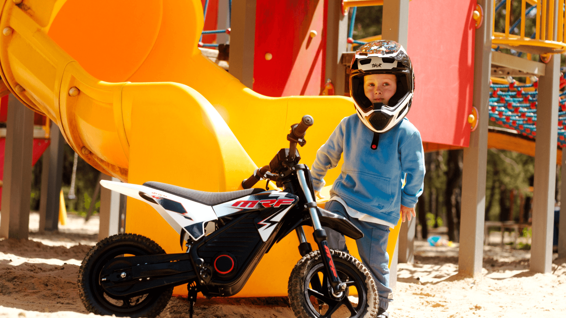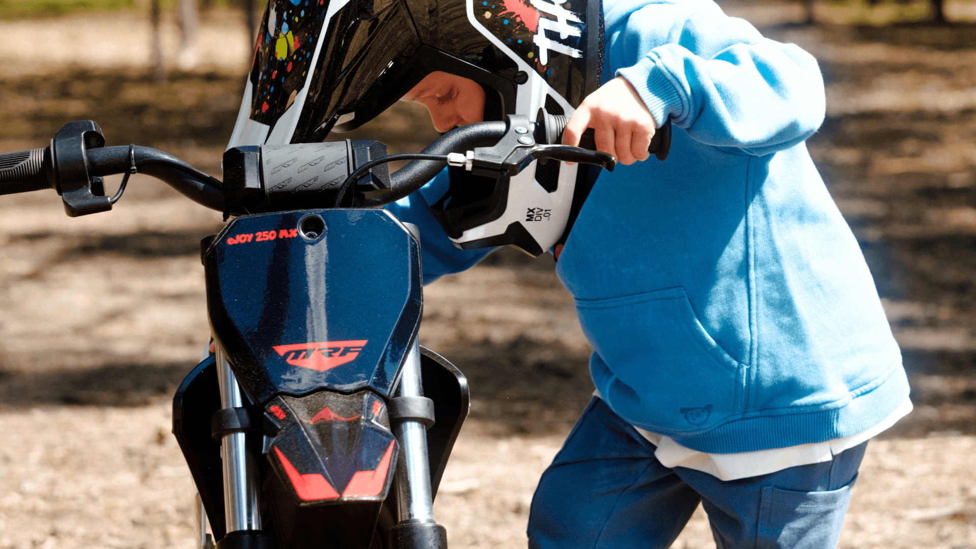MRF eJOY 250 MX to motocykl bez homologacji, możesz nim jeździć po: torach off-roadowych terenach przeznaczonych do jazdy motocrossowej, terenach prywatnych podwórkach leśnych ścieżkach (pamiętaj sprawdzić lokalne przepisy).